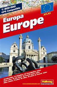 2008-udgaven af Hallwag Europa Vejatlas indeholder: