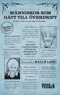 En bok om människor - profeter, astronauter, stjärnadvokater, lekprogramledare - som gått i spinn, tappat omdömet och tagit i för mycket, som inte kunnat stava till "lagom" och som aldrig känt att nu-räcker-det-det-är-ju-en-dagimorron-också-och-man-ska-sluta-när-det-är-som-roligast.<[...]