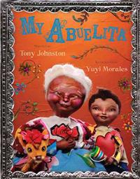 Abuelita's hair is the color of salt. Her face is as crinkled as a dried chile. She booms out words as wild as blossoms blooming. She stuffs her "carcacha"--her jalopy--with all the things she needs: a plumed snake, a castle, a skeleton, and more.[...]